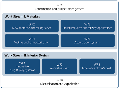 The Mat4Rail project was divided into nine work packages (WPs) and two work streams